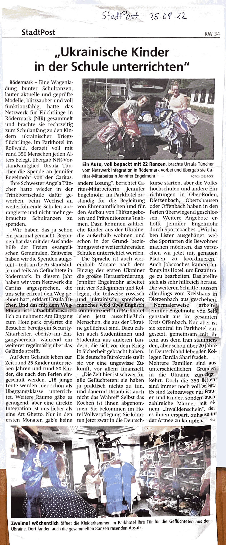 Ukrainische Kinder in der Schule unterrichten NFR Rödermark e.VVeröffentlicht von Stadtpost Rödermark in Pressebericht · 25 August 2022